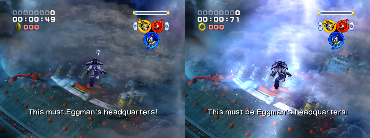 Idea 1: Hi, I'm a Sonic fan. I like it when the games I play are rich on features and content. So check it out Sonic Heroes on the GameCube lacks an option to switch the character voices to Japanese! How can this be? The previous games had this option! It's always bothered me, I tried just playing the Japanese version, but I never quite liked having two copies of the same game with minor differences. Not really minor but it is minor in terms of space, 300 MB vs 800 MB of other identical game data. I needed to bring the two together, so I did. Now you just hold the Y button during boot up to switch to the Japanese audio, simply press reset to switch back, or do the reset combo B+X+Start.